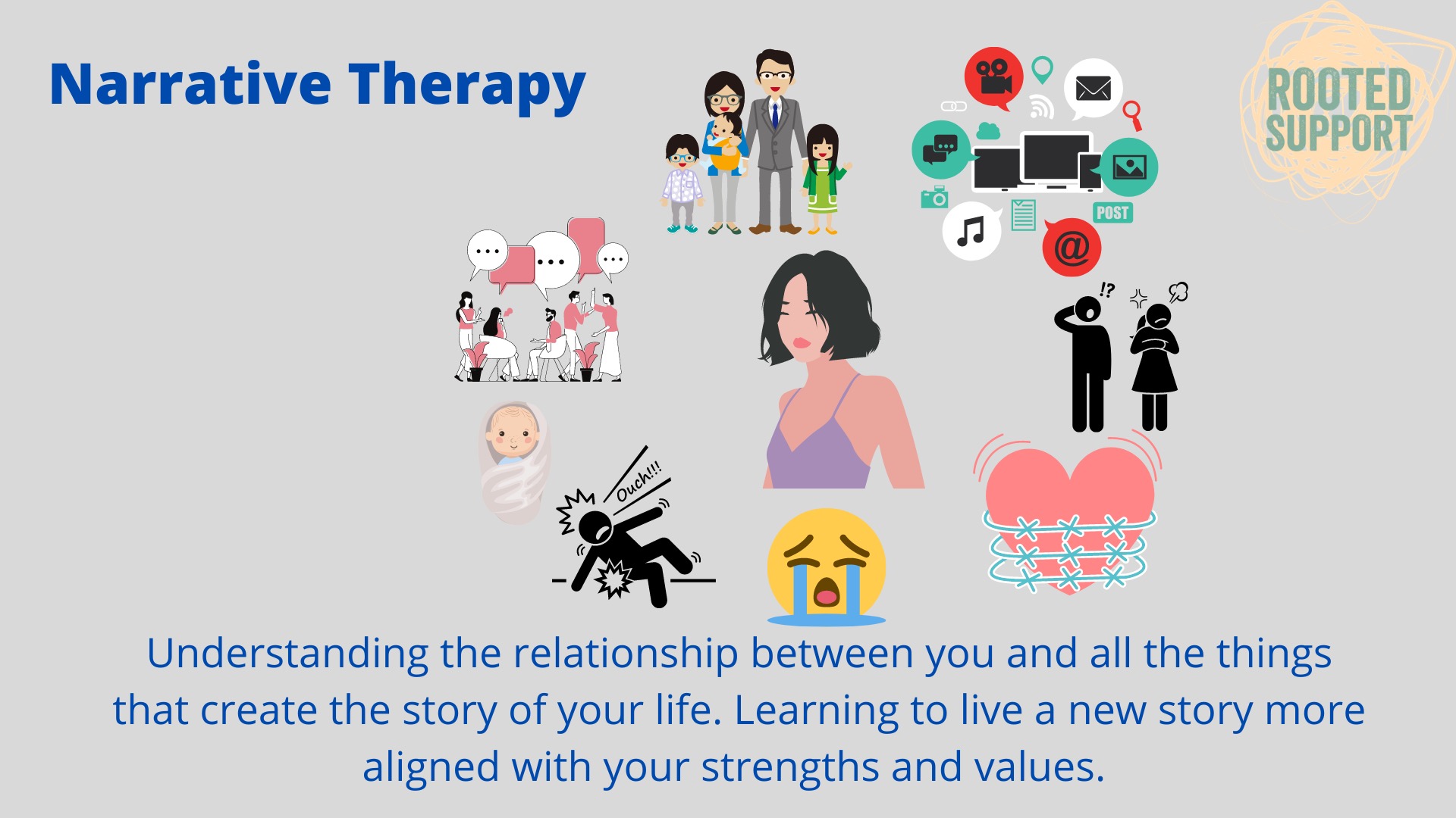 An approach to therapy that sees people as having many resources and values which have been overshadowed by a problem. Narrative therapy uses a story telling approach to collaborate to discover a preferred story over a problem story. Narrative therapy also looks at the things in a person’s life which have made the problem story easier to develop including culture, relationships and family dynamics.